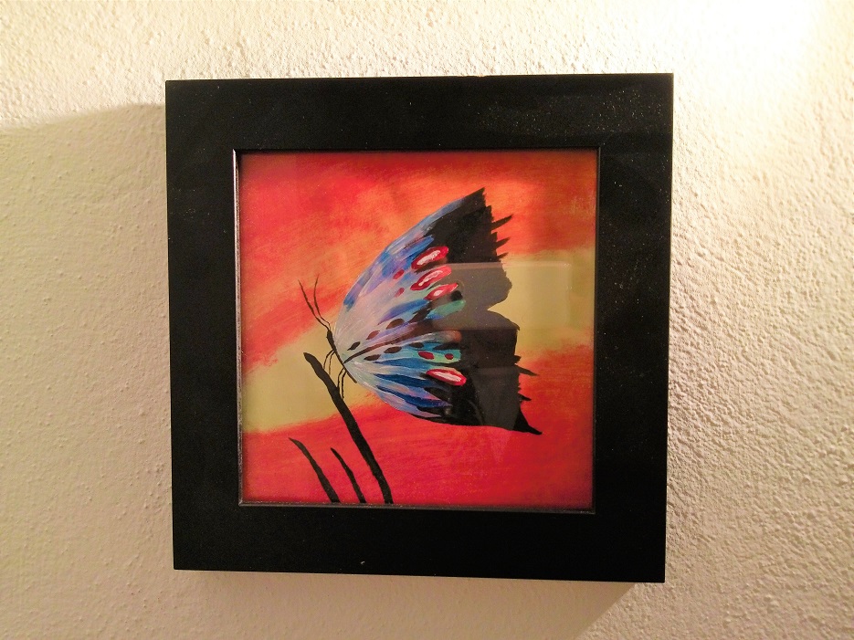 Schmetterling im Sonnenuntergang 27 x 27 cm Leinwandpapier (inkl. Rahmen)